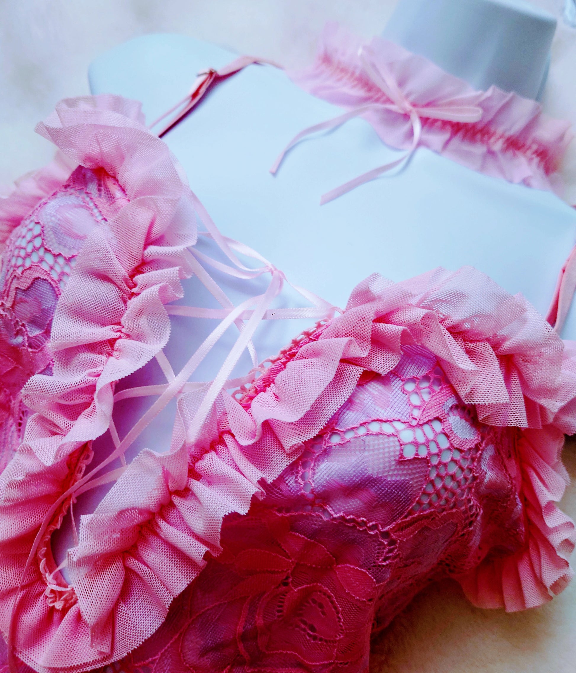 Beautiful Sweet Baby Doll Two Tone Lace Bodysuit With Choker. Perfectly Soft Fabric. Very Light.